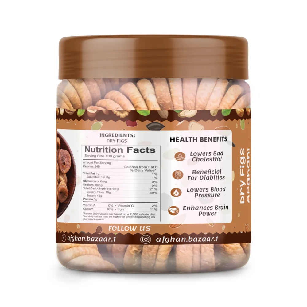 Afghan Bazaar’s Dry Figs (Anjeer) are naturally dried and valued for their soft texture and mild sweetness, making them suitable for daily snacking and traditional use.